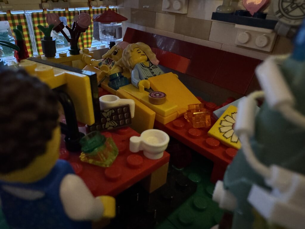 Dit is niet zomaar een spin. Dit springspinnetje verhuisde ongemerkt mee in de lijst van een schilderij van Fedde. Toen we het LEGO-huis aan het bouwen waren kroop ie opeens tevoorschijn! Daarmee heeft ie een plekje op de muur in het LEGO-huis verworven en nu ook op deze website!